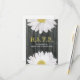 A wedding rsvp featuring a background of barnwood on front with daisies at top and bottom. Daisies also on back. Personalize text front and back with details of your occasion. Look for matching items at The Pink Schoolhouse.