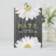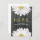 Un rsvp de mariage avec un arrière - plan de bois d'écorce sur le devant avec des marguerites en haut et en bas. Les marguerites aussi sur le dos. Personnalisez le texte avant et arrière avec les détails de votre occasion. Recherchez les articles correspondants sur The Pink Schoolhouse. com
