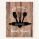 Personalized cookbook to fill with your family's favourite recipes. A rustic wood texture background with baking utensils makes the spiral recipe book a keepsake holiday gift for family.