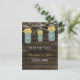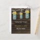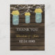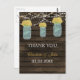Rustic Barnwood, dangling string lights with yellow flowers in a mason jar wedding Thank You Postcards. Matching products also available.