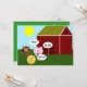 Super cute children's birthday party invitations are perfect for the kid that loves animals, especially the toddler that is learning about animals and their sounds. These childrens birthday party invitations are not gender specific and are good for either boys or girls. The cow, duck and pig are standing in front of a red barn and are saying, Moo, Oink and Quack! Matching postage stamps also available!