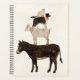 Barnyard Buds VI par Victoria Borges. Il présente une image amusante d'un âne, d'une chèvre, d'un chien et d'un chat empilés l'un sur l'autre.