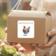 Seal envelopes, decorate jars or add branding to homemade goods with this vivid watercolor chicken sticker. The lively strokes of orange and teal feathers instantly brighten packaging. Add playful text right on the sticker, such as “Fresh from Jane’s Coop” around the edge or “Egg-cellent Thanks!” across the bottom, for a personalized, professional finish.