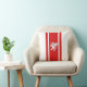 “Argent, on a pale endorsed gules a griffin argent.” Populace badge for the Barony of Politarchopolis in the Society for Creative Anachronism. Back of pillow is a medieval-style pattern in coordinating colours.