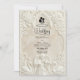 Announce your union with the timeless grandeur of 17th-century art. This design evokes the romance of a European cathedral, perfect for traditional couples.This design features a sophisticated faux bas-relief effect, simulating the look of carved antique stone in a monochromatic palette of warm cream, ivory, and beige. The composition is framed by a classical architectural arch adorned with ornate acanthus scrollwork and roses. At the header, a delicate illustration depicts a Baroque angel playing the violin, flanked by two graceful swans facing one another, symbolizing eternal partnership. A subtle bride and groom silhouette icon anchors the text.This is a flat printed image with a visual stone texture effect, not actual raised material or 3D embossing.