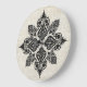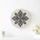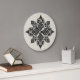 European baroque style ornamentation adorns this wall clock. Background is a traditional grey and white damask.