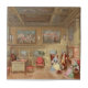 This product features a rare 1888 colour chromolithograph, which offers a glimpse into the Baroque interior decorating style of 17th century upper class home in France. An unfortunate downside of the exquisite murals and symmetrical panelling which covered the walls was the regrettable forgoing of permanently fixed furniture. Instead, movable pieces were placed where it was convenient, then pushed aside if one was in the mood to stare at the walls. For necessary furnishings, such as beds and wardrobes, it was often the case that the walls would simply be built to accommodate them, allowing the architect to designate a specific location for the cumbersome furniture without having it disrupt the flow and order of the room. The mirror set above the fireplace was a relatively new addition to interior design, one that King Louis XIV made fantastic use of in his Versailles palace.