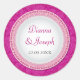 A circular frame against a hot pink floral damask pattern gives this wedding sticker a rich, opulent feel. Customized text fits within the ornate frame to make this a perfect save the date item or to use as envelope seals or on favours. Available in alternate colours with matching products. Available in alternate colours with matching products.