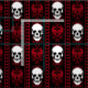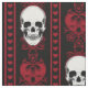 This gothic design has an ornate striped pattern of baroque ornaments, skulls, and hearts in a red and black colour scheme.