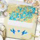 Ideal for weddings, anniversary invitations, or elegant correspondence, this Baroque-inspired envelope adds a luxurious finishing touch to your stationery suite. The turquoise lace details appear as if hand-painted over gold parchment, giving each piece an artisanal, heirloom feel. The vivid cobalt and aqua tones symbolize everlasting love and joy, making this envelope a stunning complement to any invitation, save the date card, or thank-you note from the same Baroque Vintage Mexican Wedding collection.