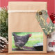 This sticker features a quaint farm scene of a chicken perched on an old wheelbarrow.