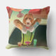 Bartending Dog in Retro Bar Throw Pillow