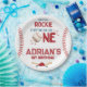 Ready for a cool sports birthday party? This design features a handpainted classic white background, navy blue and red text, a baseball, stars, a helmet with bat and ball illustrations, "Hitting the big one", and "Swing over" typography. Find matching items in my shop.