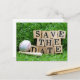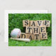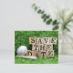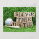 Baseball and bat with save the Date on green grass Postcard