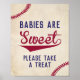 Use our vintage baseball themed "babies are sweet, please take a treat" sign at your baby shower favour table or dessert table. If you need to change the wording, the wording is customizable. To change the wording, click "Personalize This Template." If you need to change the font size or placement of the text boxes just click on the "Click to customize further" button to edit.