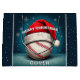 Baseball Ball Red Santa Hat Name Christmas Large Gift Bag. The design has a baseball ball with a red Santa hat on a winter background with white snowflakes. Personalize with your name. You can change the text Merry Christmas. Great for a person who loves sports.