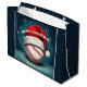 Baseball Ball Red Santa Hat Name Christmas Large Gift Bag