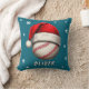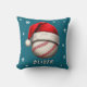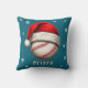 Baseball Ball Red Santa Hat Snowflakes Name Throw Pillow