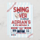 Ready for a cool sports birthday party? This design features a handpainted classic white background, navy blue and red text, a baseball, stars, a helmet with bat and ball illustrations, and "Hitting the big one", and "Swing over" typography. All text is editable on this birthday invite and budget-friendly postcards are available too! This design is for any age, gender-neutral, and is fully customizable for 1st birthday, 2nd birthday, and older kids. Find matching items in my shop.