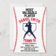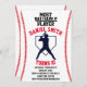 Celebrate your baseball star with this red, white, and blue baseball themed invitation.