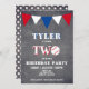 Cute Chalkboard Baseball Birthday Invitation for boys 2nd Birthday // Cute baseball birthday party card for the 2nd birthday. The design has a large baseball and bunting flags in red, white and blue colours on the chalkboard background. The back side has a baseball pattern. Personalize this birthday invite with a child`s name and a photo and personalize all the data on the invitation. Great as a 2nd birthday party invitation for boys.