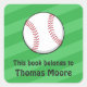 Personalized bookplates featuring a baseball on a green background and the customizable text "This book belongs to [Name Surname]"