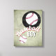 This quote baseball boyhas text on stretched canvas wall art with distressed background for your favourite ball player's decor. .