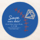 Baseball Homerun Diamond Gem Save The Date Blue Round Paper Coaster