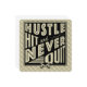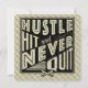 Text reads: Hustle, Hit And Never Quit, with crossed baseball and softball bats icon.