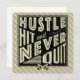Texte : Hustle, Hit And Never Quit, avec icône croisée de baseball et de battes softball.