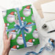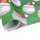 Baseball in Santa Hat Pattern on Green Wrapping Paper