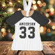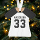 Baseball Jersey Sports Team Uniform Ornament. This baseball jersey ornament is perfect for anyone who plays school sports or loves watching sports. Personalize this custom design with your own team name and jersey number.