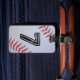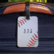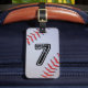 Personalized luggage tag with leather baseball with Jersey number 7.