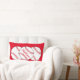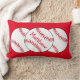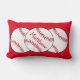 This lumbar pillow features red and white baseballs surrounded by a red background. More baseballs are on the back. Easily customize the text for a special sports fan or remove entirely.