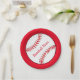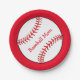 This set of paper plates features a red and white baseball surrounded by a red circle. The text reads: Baseball Mom. Easily customize the text for a special sports fan or remove entirely. Great for Mother's Day or any time of year!