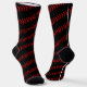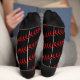 Fun socks for baseball or softball players, with a graphic of red baseball or softball laces running vertically around the socks on a black background. These make a fun gift idea for baseball and softball players.