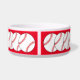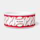 This pet bowl features red and white baseballs on a red background for a special sports fan's pet. Easily customize the name or just delete it.