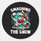 Baseball Player Christmas Santa, Smashing Through Classic Round Sticker