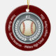 Celebrate your favourite baseball player with this personalized baseball ornament. Perfect for school teams, proud parents, and sports fans, this custom silver grey and red ceramic ornament brings team spirit to your holiday décor.