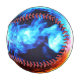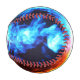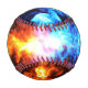 Baseball with Red and Blue flames of fire on it.