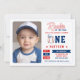 Baseball Rookie Cap Stripes Photo Boy 1st Birthday Invitation