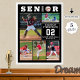 Create a custom Baseball photo display printed on a poster print ideal for high school senior night recognition, awards banquet or graduation party utilizing this easy-to-upload photo collage template with 5 pictures in various shapes and sizes with the title SENIOR incorporating their class year and accented with a baseball, your player's name, number or school initials, school name and/or mascot name or your custom text in your choice of text and background colors you can change to school colors in EDIT (shown with white text on black). OPTIONS: The sample is shown in a 18x24" size on Value Paper (Matte); other standard and custom print sizes, paper quality and framing, Instant Digital Download file for printing locally or transferring the design to a foam board, banner, canvas or other product options are available on the ordering page. RESIZING TIP: Choose Custom Size for even borders by changing the height and width proportionately AFTER clicking the UNLOCK icon (looks like a chain link). ASSISTANCE: For design assistance, contact the designer BEFORE ORDERING via the Zazzle Chat MESSAGE tab or email makeitaboutyoustore@gmail.com.