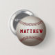 Round button with a baseball sports all-over print design and a red personalized name print.