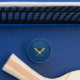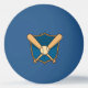 Baseball icon with two bats and a ball over a blue shield. Custom text at the back side.