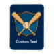 Baseball icon with two bats and a ball over a blue shield. Custom background colour. Custom text.