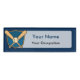 Baseball icon with two bats and a ball over a blue shield. Custom background colour. Custom text fields for name and occupation.