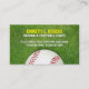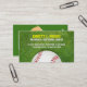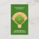 A baseball is cropped off on the bottom of this business card on a bed of grass waiting to be picked up. Main contact information prints against the grass. The reverse shows a diagram of a baseball field against green with web information printing on top of it and a tagline or other information printing below. Perfect for baseball or softball coaches, teams, leagues, sporting good stores or any sports retailer. Available with matching products.
