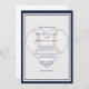 Custom basball theme wedding invitations, with a heart shaped baseball, and a navy blue border.