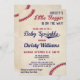 Use our vintage baseball baby sprinkle invitations to invite your guests to your baseball themed baby sprinkle. Classic red baseball threads are over a vintage background and fonts are in navy blue and red. Be sure to look for our coordinating invitation inserts and other baseball themed baby shower supplies.