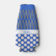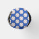 Baseballs create a bright polka dot pattern on a blue background on both the front and the back of this can cooler for baseball fans. On the front, baseball bats are also used in a complementary pattern, and there is a white stripe for you to personalize with a name or other text.